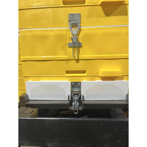 Robbing bees and yellow jackets can't figure out how to get into the hive to steal, but your bees will learn how to come and go through the top slot. ANEL robbing screens are sold as a pair and will replace your entrance reducers...simply slide out your regular entrance reducers and replace them with the robbing screens. For ANEL hives only. White is the only color available and is made of a UV resistant plastic. Sold as a pair.