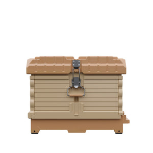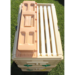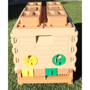 Our insulated 7 frame bee hives are perfect for the hobby beekeepers, young and elderly beekeepers. You can add matching insulated supers for honey production. Our nucs are easier to lift and inspect the brood chamber, lighter than full size 10 frame supers, and bees overwinter better in the 7 frame hives. They feature the same latches for the supers and top cover for easy transportation. All our beehives have plenty of ventilation holes to prevent moisture build up inside the hive. You can use your own standard frames, the Apimaye Pro Frames, or Core Frames in these hives. All the hive boxes and the hive covers are insulated to keep the colonies warmer in the cold climates. This beehive can be divided with the included division board to house 2 separate colonies and used as mating nucs. They have 2 separate color coded entrances, 2 separate top feeders. You can feed the colonies with sugar syrup and candies at the same time. You can keep 2 extra queens in one nuc for the emergency queen losses or rear your own queens. It is the best insulated ventilated hive and nuc available.