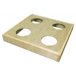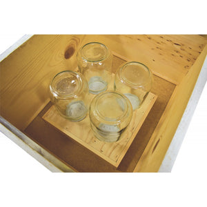 This 4-jar feeder will keep you from having to refill jars every other day when introducing package bees or nucleus colonies. This will also come in handy when trying to get hives up to weight before winter. Place above brood frames and use a brood box as a shell.