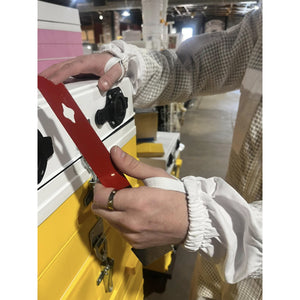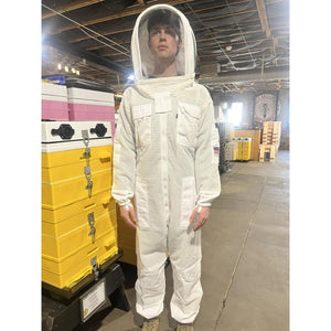 Classic 3 layer ventilated mesh beekeeping suit. Great protective wear option for those who want to keep as cool as possible while working yards. U-Veil style with open mesh sides for better peripheral vision. Elastic ankles with zippers, cuffs, and thumb strap ensure a snug, secure fit. 8 Pockets ensure you have plenty of space to put your tools and must-haves. Plastic shim inserted into the top crown of the veil provides rigidity to the veil--keeping it away from your face. We recommend wearing a ball cap underneath the veil, if not using the shim. Machine wash cool with unscented detergent; hang dry. Always detach veil before machine washing suit. Veil is spot-clean only and hang to dry. DO NOT PUT SUIT OR VEIL IN THE DRYER.