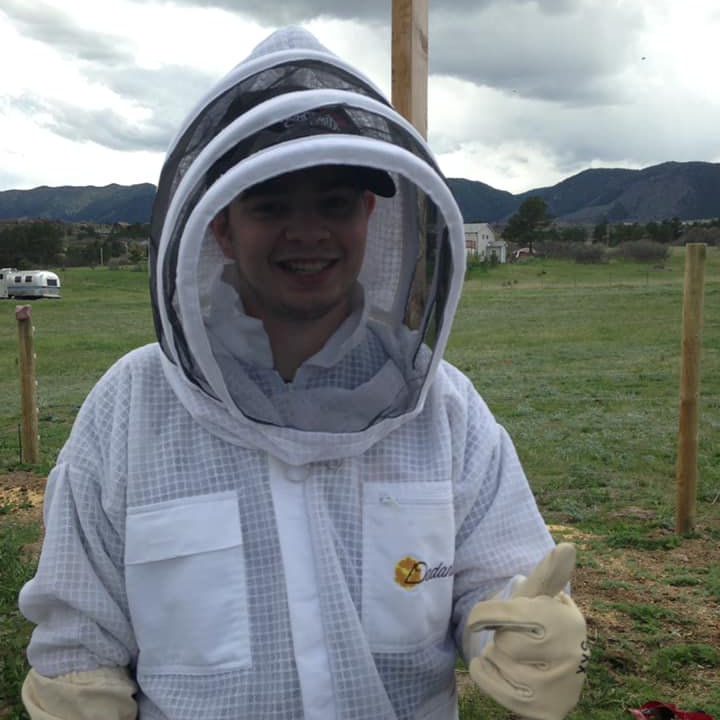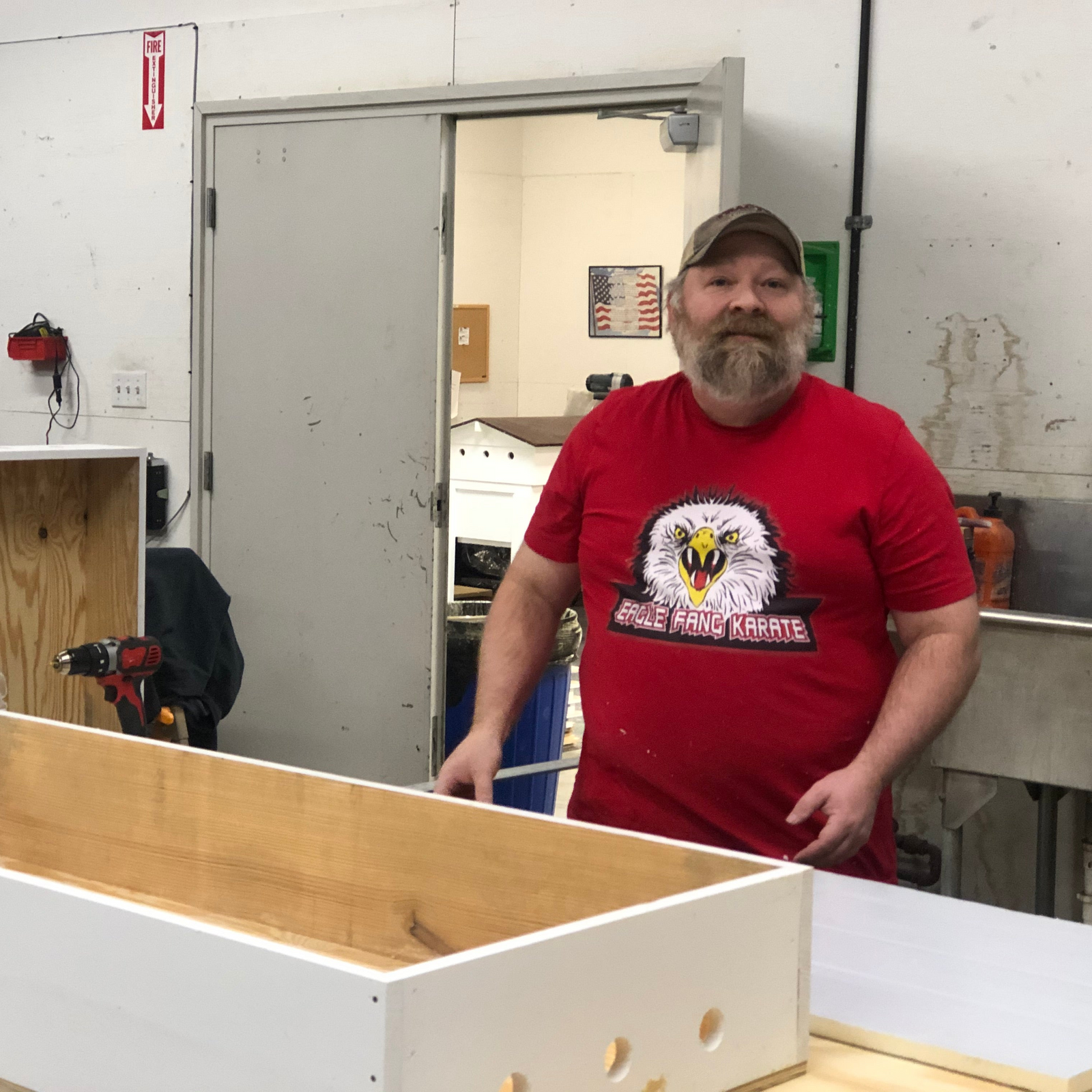 Jake provides all around support. Whether it is building boxes, extracting honey or handing out bees.