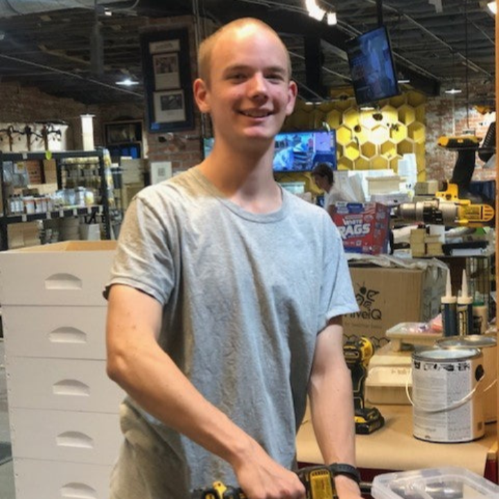 @ShopifyJohn is our newest team member and youngest beekeeper. He can put a box together like nobody's business!