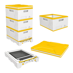 The interlocking design includes the queen excluder to ensure a perfect seal between hive bodies and frames eliminating hot or cold drafts and prevents water entering the hive.