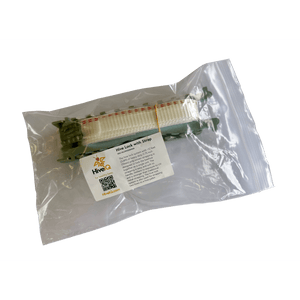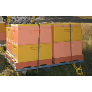 The beehive lock system with 3.6M (11.8 feet) of heavy duty 19mm poly-woven strapping is designed to lock the beehive together as a single unit. The strapping is easy and soft to handle, resilient to exposure to UV and is stronger than traditional metal strapping. The beehive lock system is also used for strapping two hives to a hive pallet. A must-have for windy areas. If you knew how much I absolutely hate traditional ratchet straps, you will feel overjoyed at being able to strap and unstrap your hive without a fight.