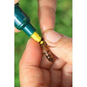 Acrylic paint pens for marking the thorax of your queen. Marking a queen with a dot of paint on her thorax is important in several ways. Queen marking makes the queen easier to find in a colony, particularly in a large populous colony, and sometimes when a queen hides. The color code indicates the birth year of the queen (see below). When an unmarked queen appears in the colony, the beekeeper knows queen replacement has occurred, which could be one of the “big four”: swarming, supersedure, sudden death or usurpation of the former queen.