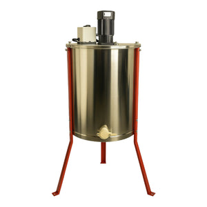 This durable extractor makes quick work of honey extraction for the small hobbyist beekeeper. Smooth 22 gauge stainless steel tank, sealed bearings, and steel gears makes this a professional 3 frame honey extractor. Durable 110v variable speed motor for effortless extraction. Three deep, medium or shallow frames can be extracted at once. When paired with one of our rental hot uncapping tools it really makes your honey extraction a breeze! Comes with legs and a honey gate to make draining your honey into your bottling bucket a breeze!